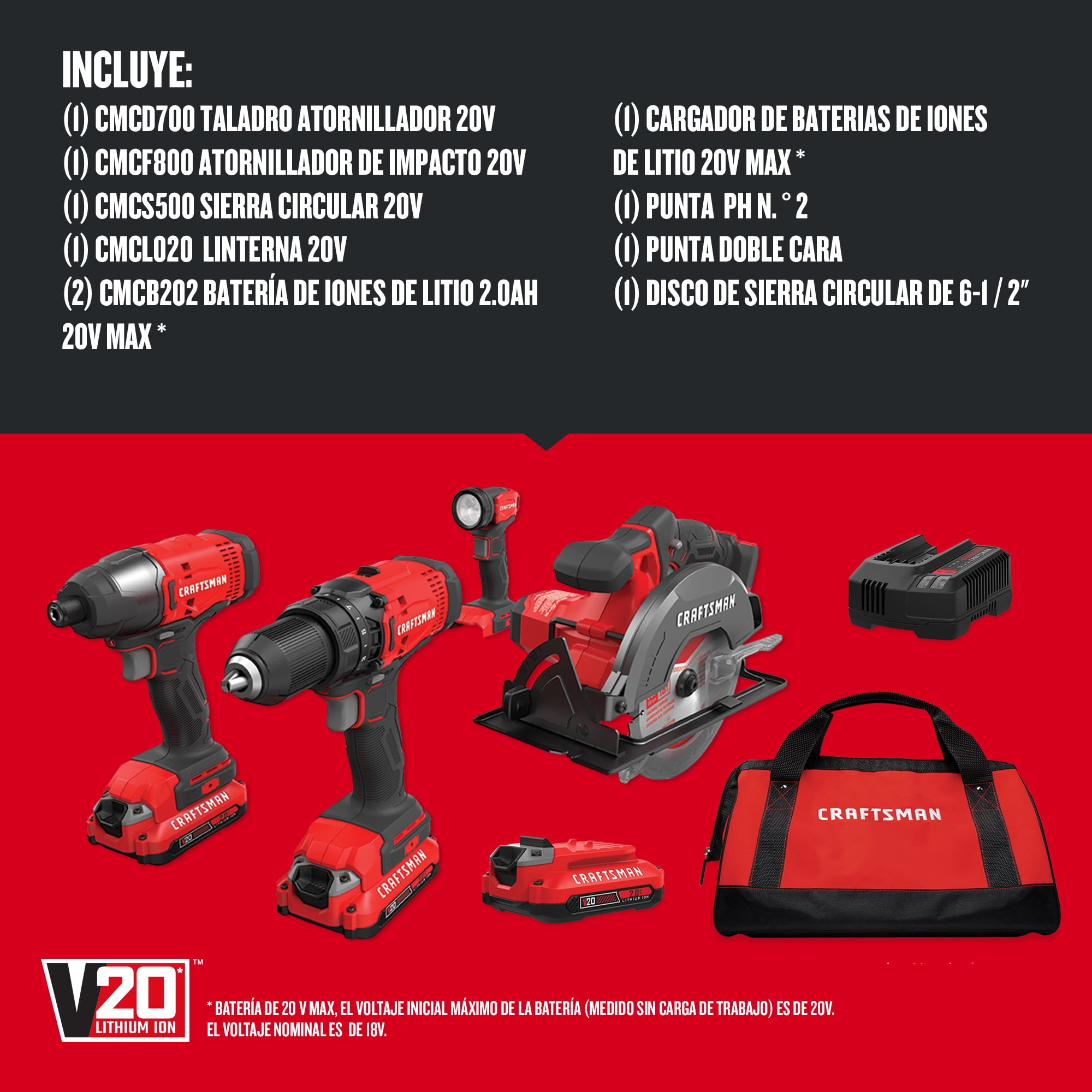 Combo Taladro Atornillador + Sierra Circular 20V CRAFTSMAN