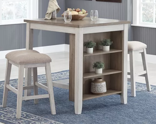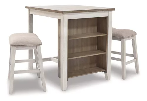 Juego De Comedor 3 Piezas Altura Mostrador Blanco Lavado