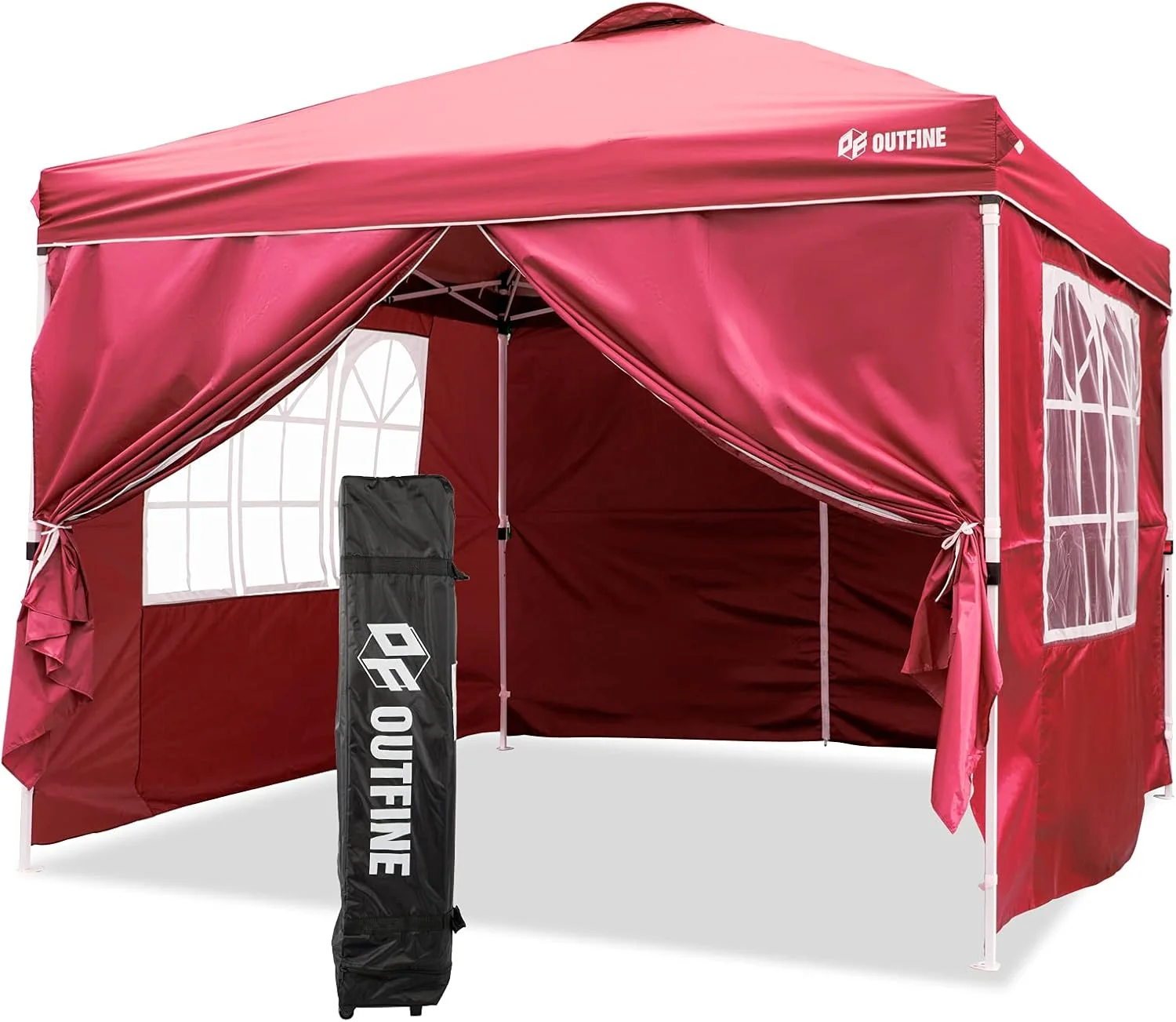 OUTFINE - Toldo desplegable de 10 x 10 pies, para cenador instantáneo, totalmente impermeable, toldos para fiestas al aire última intervensión con 4 paredes laterales extraíbles, estacas x 8, cuerdas x 4 (negro, 10 x 10 pies)