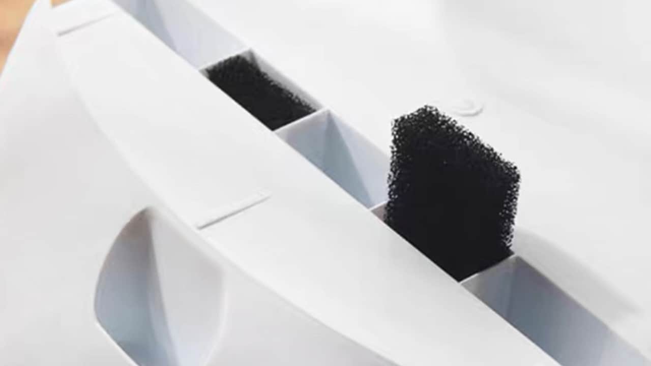 Una vez que se retiran la cubierta y el tambor, puede limpiar fácilmente el interior de la base con un paño húmedo o toallitas. El cajón también se desliza completamente para limpiarlo y contiene filtros de carbón reemplazables para mantener la frescura.