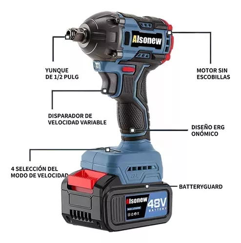 Las llaves de impacto están equipadas con un motor sin escobillas de alta calidad que garantiza un rendimiento superior, una vida de batería más larga y una eficiencia en comparación con los motores con escobillas. Proporciona un par de hasta 350Nm, lo que permite manejar fácilmente tareas rápidas y difíciles. Ideal para proyectos de construcción o maquinaria pesada.