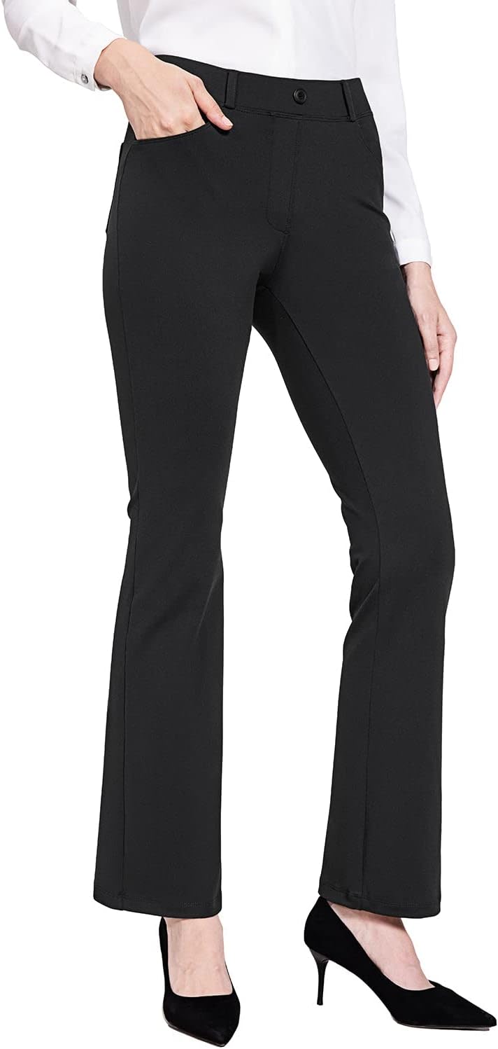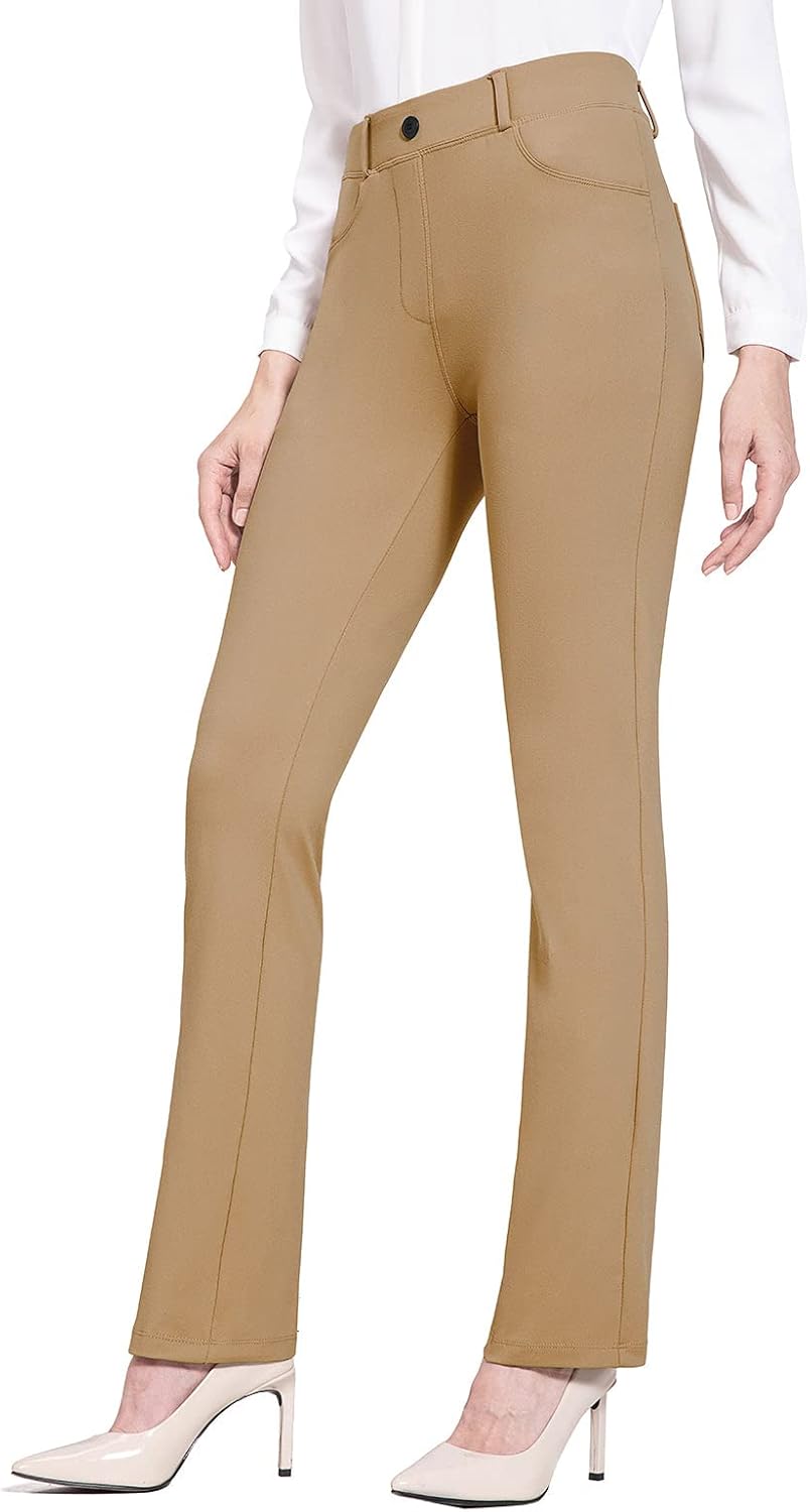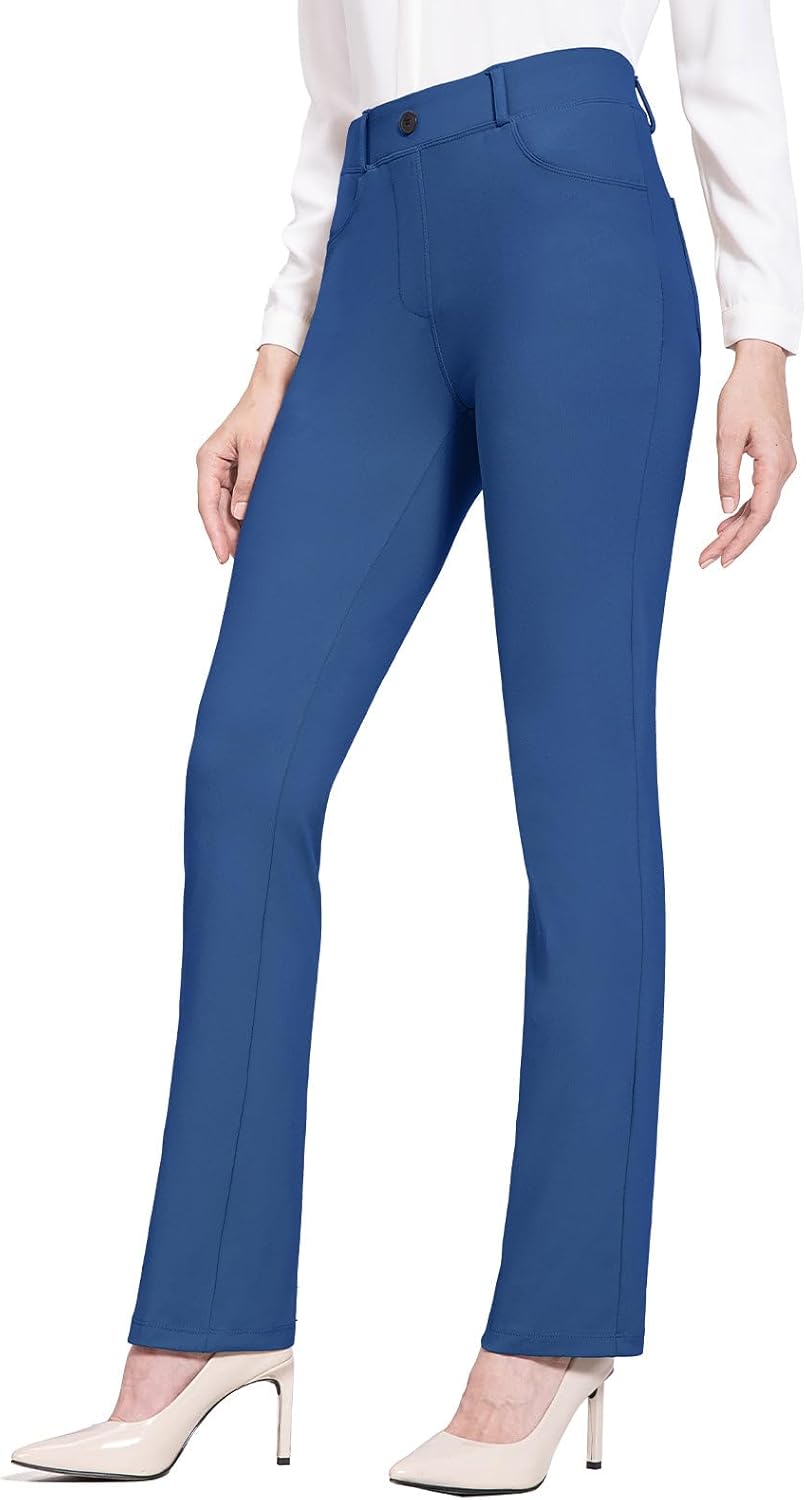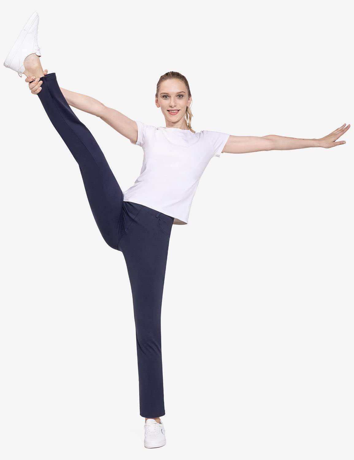 BALEAF - Pantalones de yoga para mujer, pierna recta, sin cierre, elásticos, para el trabajo, oficina, negocios, pantalones casuales con bolsillos. Tela: 87% nailon, 13% elastano, no se transparentan y cierre elástico durante todo el día. Comodidad: tela elástica en cuatro direcciones, tela de yoga no transparente sin diseño de cierre que proporciona una experiencia de comodidad durante todo el día. Vestido para el trabajo: trabillas para cinturón, bragueta sintética y un botón no funcional en la cintura para el estilo de los pantalones de vestir, hacen que tu atuendo esté listo para el negocio. 4 bolsillos funcionales: 2 bolsillos diagonales estilo oficina en la parte delantera, lo suficientemente profundos para teléfono celular, 2 bolsillos de parche en la parte posterior. Ajuste de pierna recta: cierre elástico de tiro medio y ajustado a través de la cadera y el muslo, con una pierna recta para adelgazar tu silueta. Pantalones de vestir de yoga Baleaf se ven muy bien con zapatos de tacón, zapatos planos o deportivos, combinan bien con trajes, camisas o uso diario.
