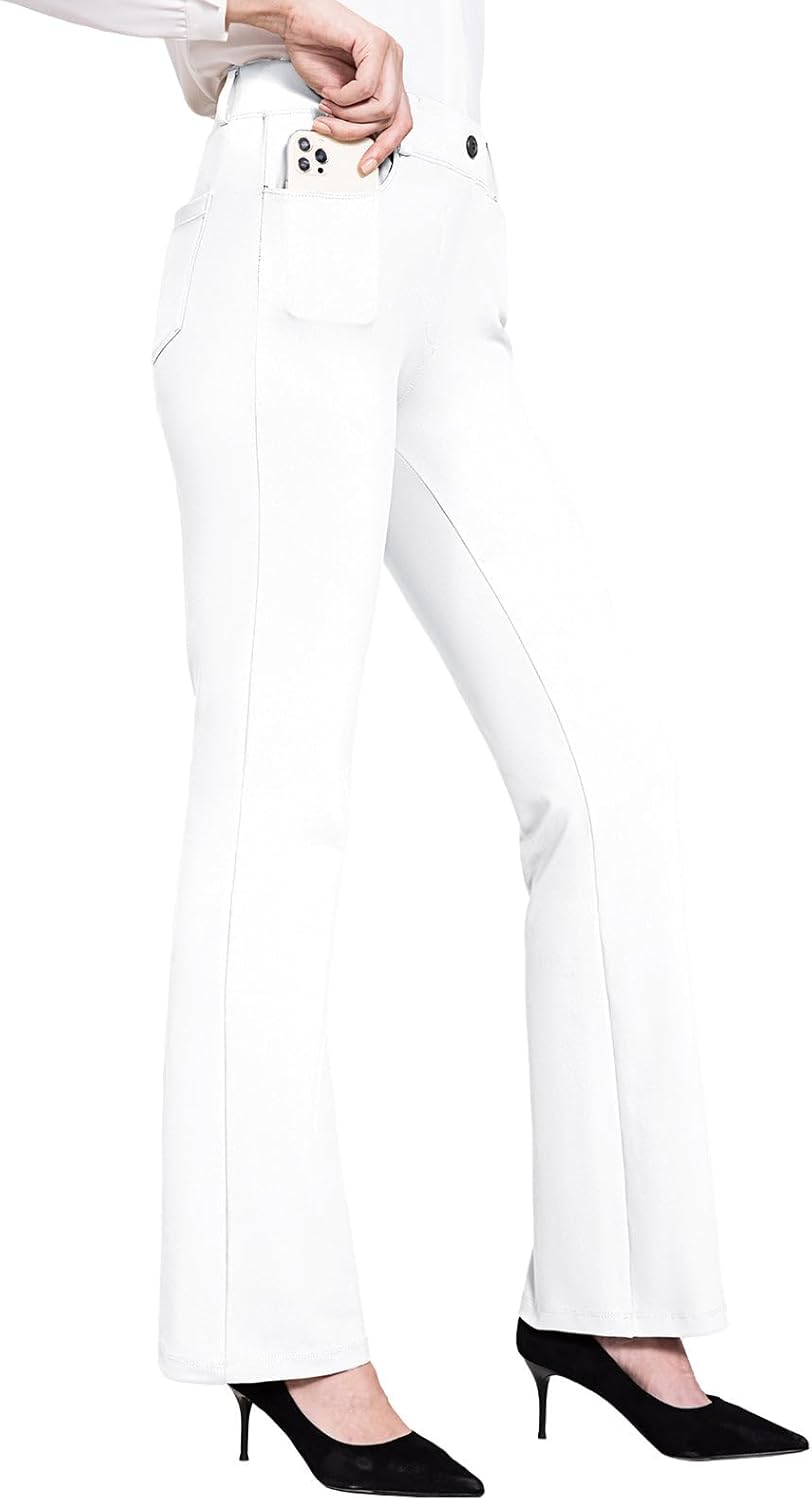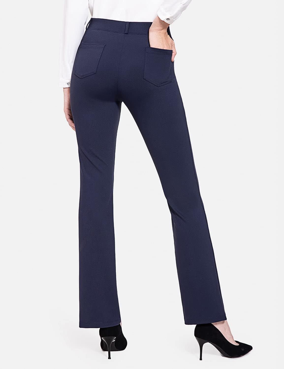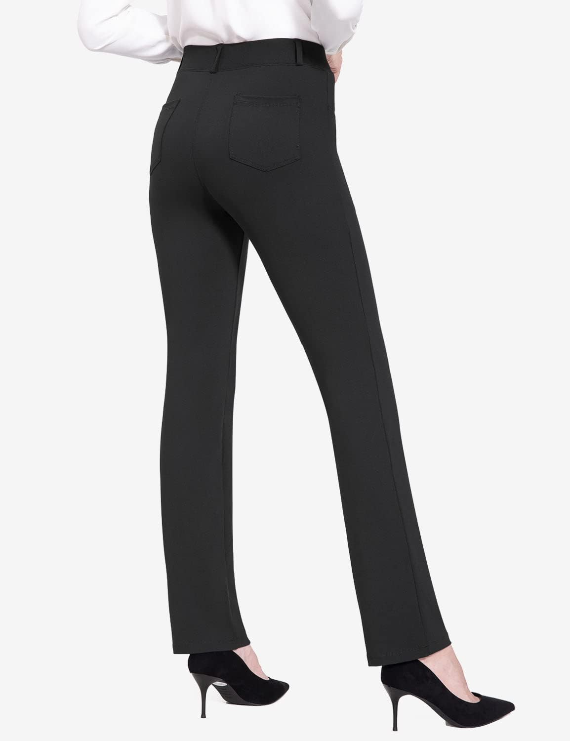 BALEAF - Pantalones de yoga para mujer, pierna recta, sin cierre, elásticos, para el trabajo, oficina, negocios, pantalones casuales con bolsillos. Tela: 87% nailon, 13% elastano, no se transparentan y cierre elástico durante todo el día. Comodidad: tela elástica en cuatro direcciones, tela de yoga no transparente sin diseño de cierre que proporciona una experiencia de comodidad durante todo el día. Vestido para el trabajo: trabillas para cinturón, bragueta sintética y un botón no funcional en la cintura para el estilo de los pantalones de vestir, hacen que tu atuendo esté listo para el negocio. 4 bolsillos funcionales: 2 bolsillos diagonales estilo oficina en la parte delantera, lo suficientemente profundos para teléfono celular, 2 bolsillos de parche en la parte posterior. Ajuste de pierna recta: cierre elástico de tiro medio y ajustado a través de la cadera y el muslo, con una pierna recta para adelgazar tu silueta. Pantalones de vestir de yoga Baleaf se ven muy bien con zapatos de tacón, zapatos planos o deportivos, combinan bien con trajes, camisas o uso diario.