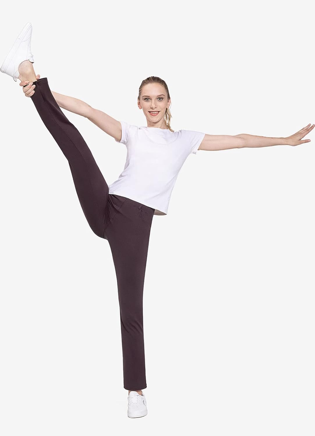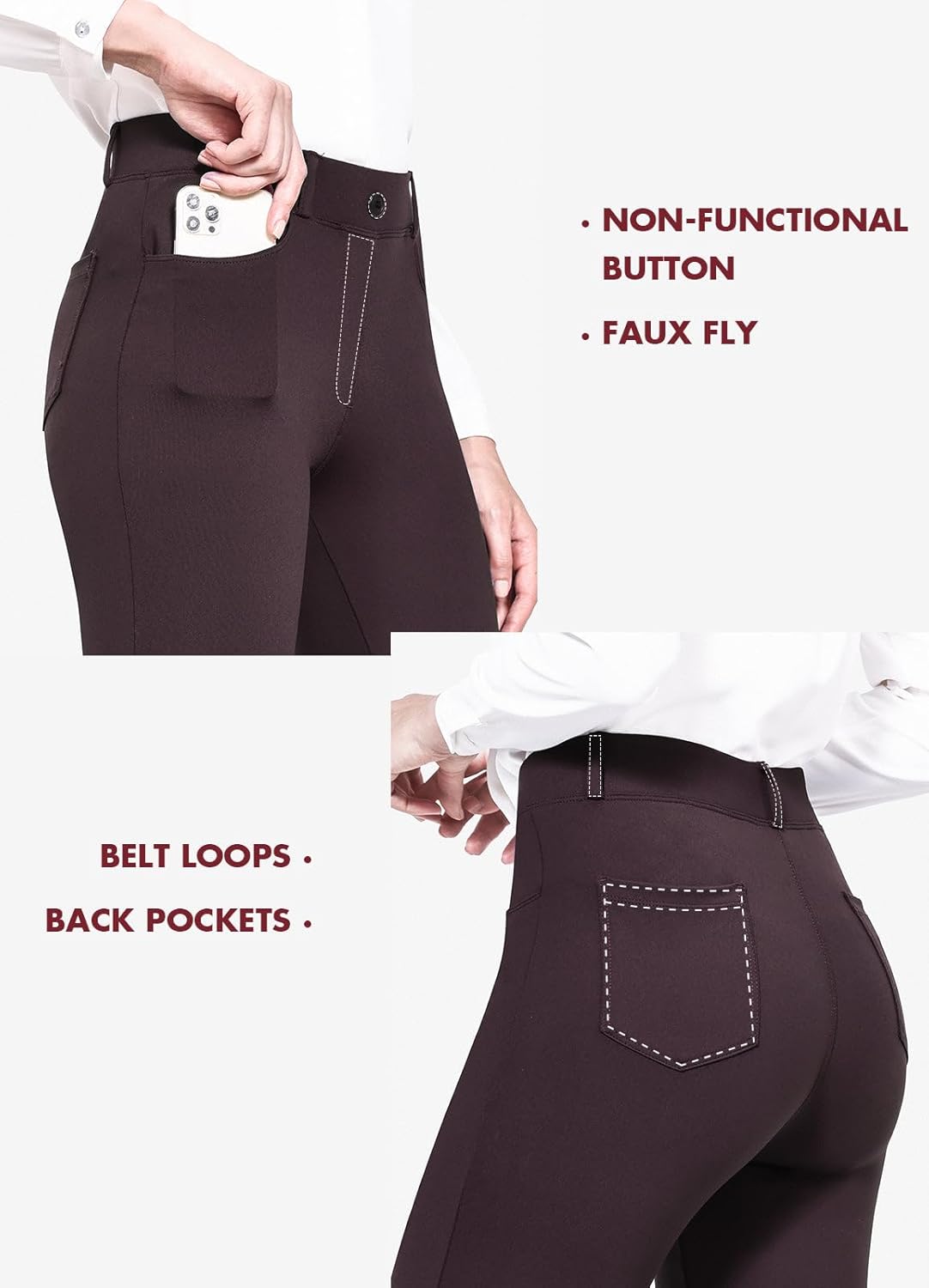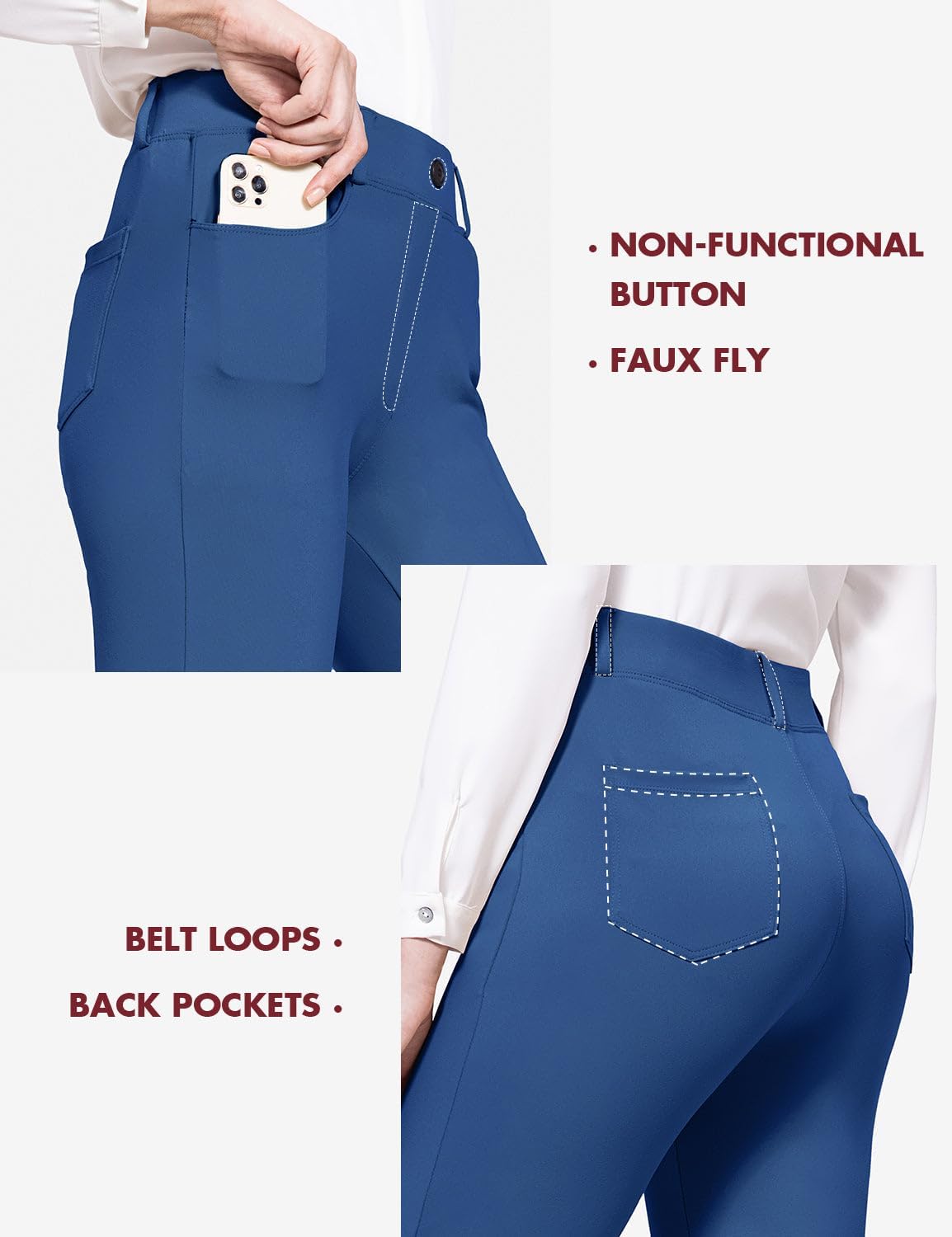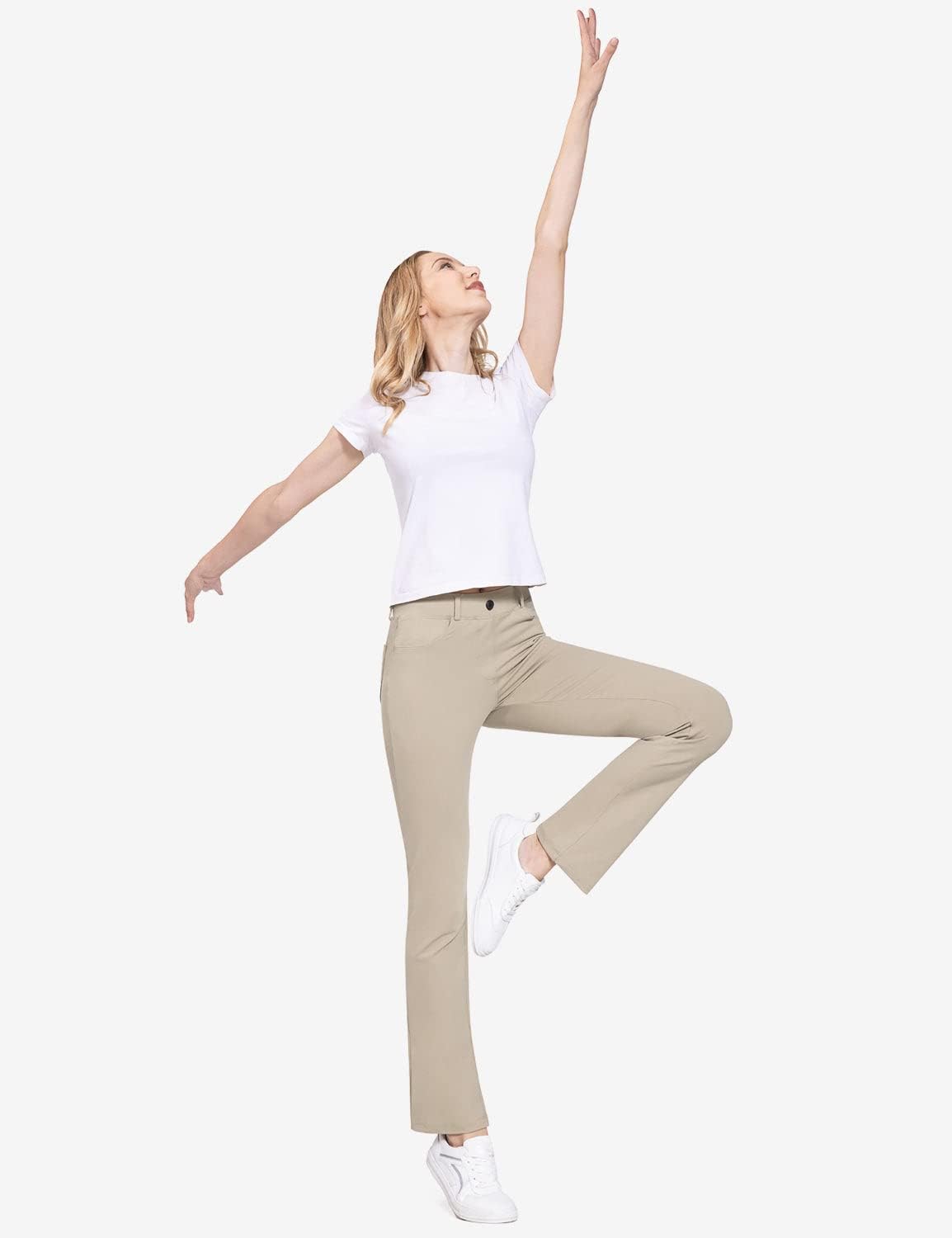 BALEAF - Pantalones de yoga para mujer, pierna recta, sin cierre, elásticos, para el trabajo, oficina, negocios, pantalones casuales con bolsillos. Tela: 87% nailon, 13% elastano, no se transparentan y cierre elástico durante todo el día. Comodidad: tela elástica en cuatro direcciones, tela de yoga no transparente sin diseño de cierre que proporciona una experiencia de comodidad durante todo el día. Vestido para el trabajo: trabillas para cinturón, bragueta sintética y un botón no funcional en la cintura para el estilo de los pantalones de vestir, hacen que tu atuendo esté listo para el negocio. 4 bolsillos funcionales: 2 bolsillos diagonales estilo oficina en la parte delantera, lo suficientemente profundos para teléfono celular, 2 bolsillos de parche en la parte posterior. Ajuste de pierna recta: cierre elástico de tiro medio y ajustado a través de la cadera y el muslo, con una pierna recta para adelgazar tu silueta. Pantalones de vestir de yoga Baleaf se ven muy bien con zapatos de tacón, zapatos planos o deportivos, combinan bien con trajes, camisas o uso diario.