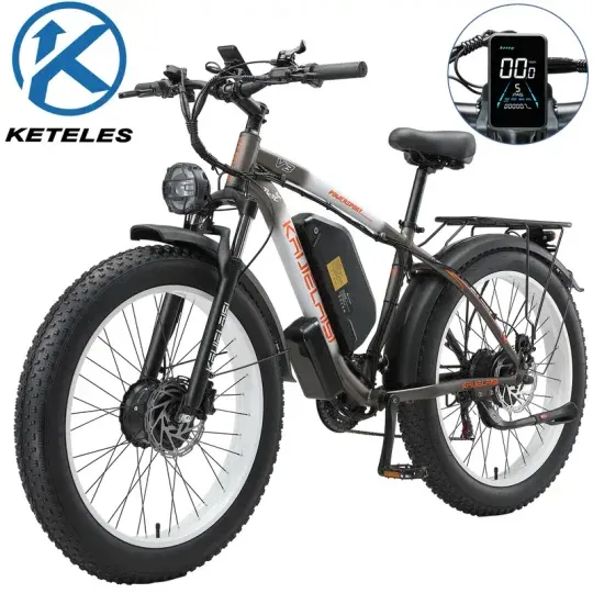 Bicicleta eléctrica de montaña KETELES 48V 23ah 1104WH Batería Doble Motor Bicicleta eléctrica de neumáticos gruesos - Todo terreno suspensión completa AWD E-Bike para adultos - Batería removible y rendimiento duradero