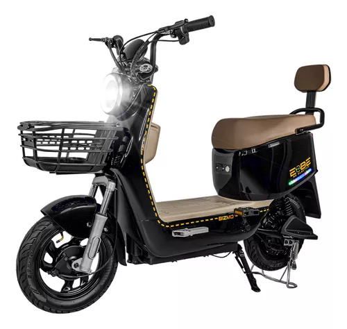• Capacidad de carga máxima (peso): 120 kg • Freno: Frenos de tambor delantero y trasero • Material: - Rines de acero - Estructura de acero - Plástico PP - Vinil piel • Duración de la batería: 80-100 kilómetros • Batería: 4 baterías ácido-plomo/12 V • Neumáticos: - Ruedas de nylon - 2.75 x 10” - Diámetro: 39 cm - Neumático inflable sin cámara - Inflar máximo a 36 psi - Ancho: 6 cm • Velocidad - 1 Velocidad: Máx. 25 km/h - 2 Velocidad: Máx. 35 km/h - 3 Velocidad: Máx. 50 km/h • Adaptador de corriente - Entrada: 110-220 V 50/60 Hz 20 A - Salida: 54.6 Vcc 3 A • Tiempo de carga: 1 hora 30 minutos • Características especiales - Cuenta con caballete trasero - Cuenta con faro frontal y canastilla - Cuenta con control de alarma - Incluye direccionales y claxon • Botones - Luz baja - Luz alta - Direccionales (derecha-izquierda) - Bocina o claxon • Control remoto - Alarma activada - Localizar bicicleta - Alarma desactivada - Sonido de alarma • Indicadores en pantalla - Velocidad (km/h) - Nivel de batería - Conteo total - Luz alta - Direccionales - Freno