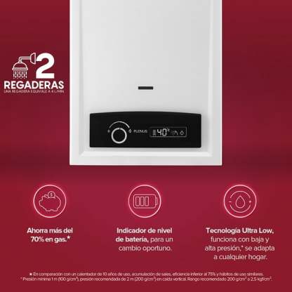 Ahorra más del 70% en gas*, Calienta el agua de forma inmediata con tan solo abrir la llave.