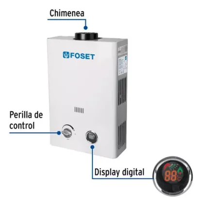 CALENTADOR DE PASO INSTANTÁNEO 6 L 1 SERVICIO GAS L.P. Marca Foset Código 45271 Clave CALE-6I