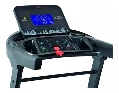 ESPECIFICACIONES TÉCNICAS • Motor: 3.5 Hp. • Voltaje: 110 V. • Peso máximo soportado: 150 kg. • Rango de velocidad: 1 a 18 km/h. • Funciones de la pantalla: velocidad, tiempo, distancia y calorías. • Tipo de inclinación: automática (hasta 15°). • Entrada USB y auxiliar.