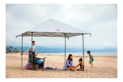 - Peso: 9 kg, más ligero que refugios solares instantáneos comparables de la misma marca. - Material UVGuard con protección UPF 50+ contra rayos ultravioleta. - Montaje rápido aproximadamente en 3 minutos. - Diseño con marco de una sola pieza y postes telescópicos para configuración sencilla y almacenamiento compacto. - Tecnología Comfort Grip Lite que asegura el refugio en su lugar para extensión de poste sin esfuerzo.
