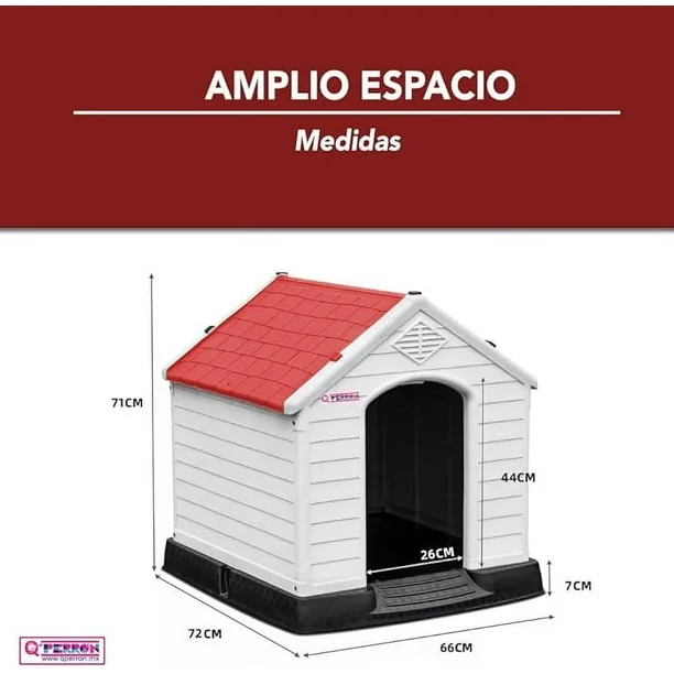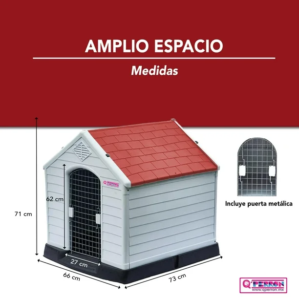 CASA MUY ESPACIOSA | Modelo KLUB CHICA | Color verde. EXCELENTE PARA SU DESCANSO | Sus medidas de 72 cm de largo x 66 cm de ancho x 71 cm de alto, ofrece mucho espacio para que la mascota se mueva y descanse cómodamente. RESISTENTE AL CLIMA | Hecha de materiales resistentes a la intemperie, que garantizan su resistencia y durabilidad a lo largo del tiempo, esta casa canina es impermeable y puede soportar lluvia, nieve, sol, aire y temperaturas extremas. VENTILACIÓN ÓPTIMA | Cuenta con rejillas de ventilación en la parte frontal y trasera que favorece una circulación de aire adecuada dentro de la casa e ideal para días calurosos. CONFORTABLE | Además de ser resistente, esta pieza ha sido diseñada pensando en tu comodidad. Sus materiales de alta calidad garantizan que puedas disfrutar de su uso sin sacrificar tu bienestar. ¡Siéntete cómodo y seguro al utilizarla! REGULACIÓN TÉRMICA | Ofrece frescor en verano y resguardo en invierno, procurando una temperatura agradable durante todo el año. PISO ELEVADO | Equipada con un piso elevado que resguarda a tu perro de la humedad y los insectos del suelo, dandole a tú perro esa seguridad de que estará protegido. IMPERMEABILIDAD | Su diseño con techo inclinado previene la filtración de agua, garantizando una protección completa frente a las inclemencias climáticas. SEGURIDAD INCORPORADA | Incluye estacas para asegurarla al jardín, brindando estabilidad adicional al fijar la casa al suelo.