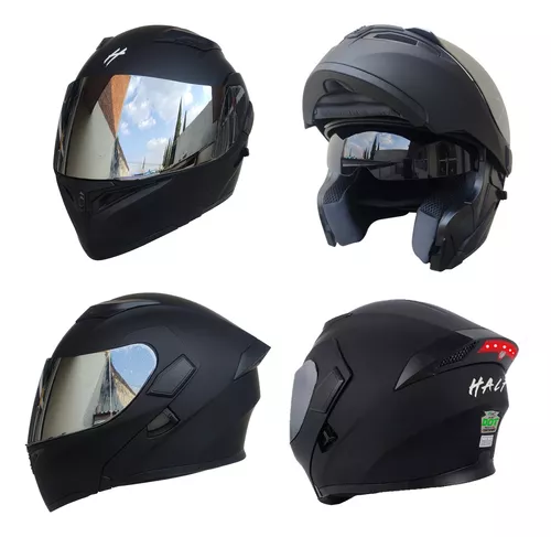 CASCO NEGRO MATE STOP LED LUZ ABATIBLE CERTIFICADO