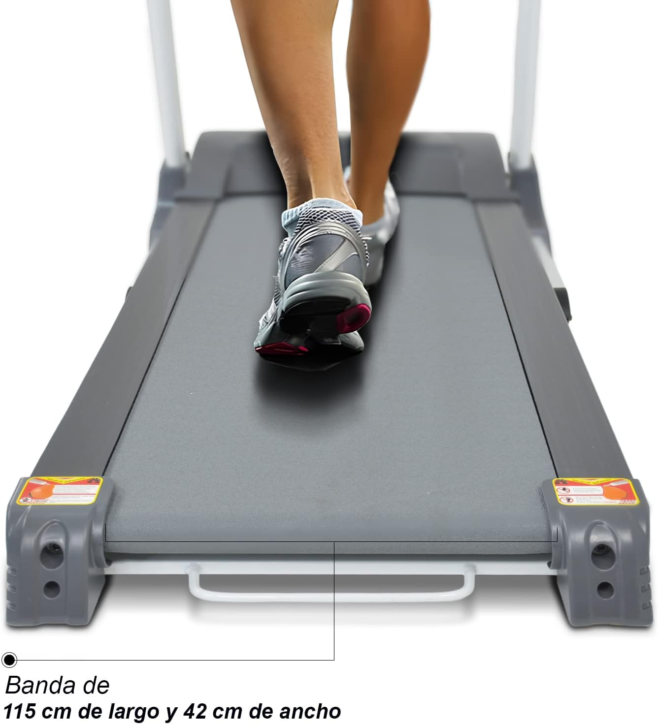 CALIDAD ANTE TODO Nuestra caminadora eléctrica es capaz de soportar hasta 110 kg y amortiguar cada paso; el área de carrera mide 42 cm ancho y 115 cm largo, para poder correr o trotar con la máxima seguridad.
