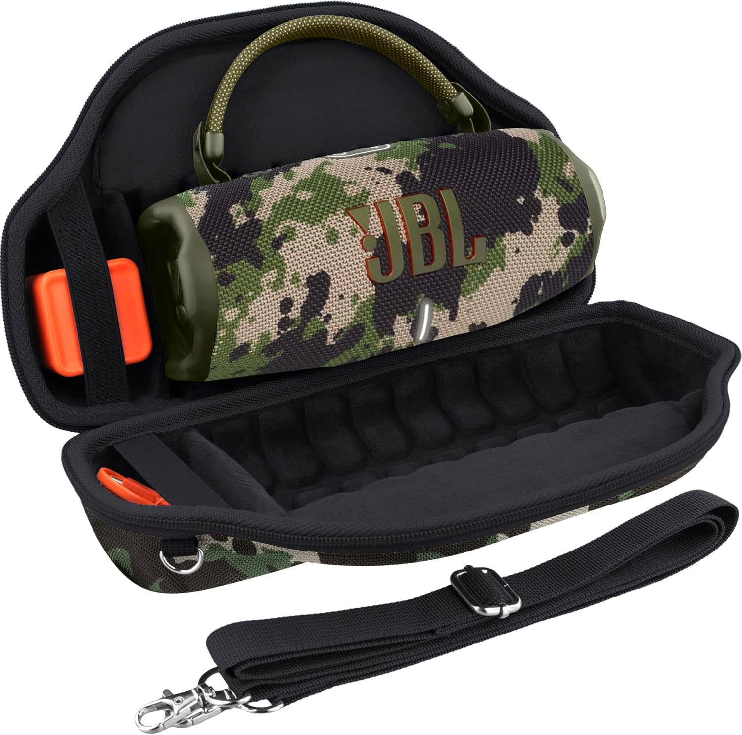 Los artículos del paquete incluyen: 1 altavoz Bluetooth inalámbrico portátil JBL Charge 6 con IP68 impermeable (negro), 1 correa de transporte extraíble, 1 cable USB-C, 1 funda de viaje Diginerds para carga 6