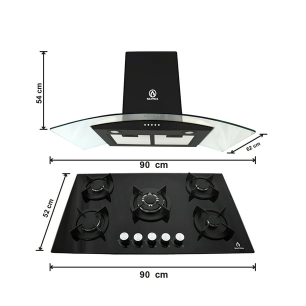 Campana CC-90-Black de pared de acero inoxidable negro con cristal templado curvo, con Iluminación Tecnología L.E.D. Filtros de aluminio lavables y reemplazables
