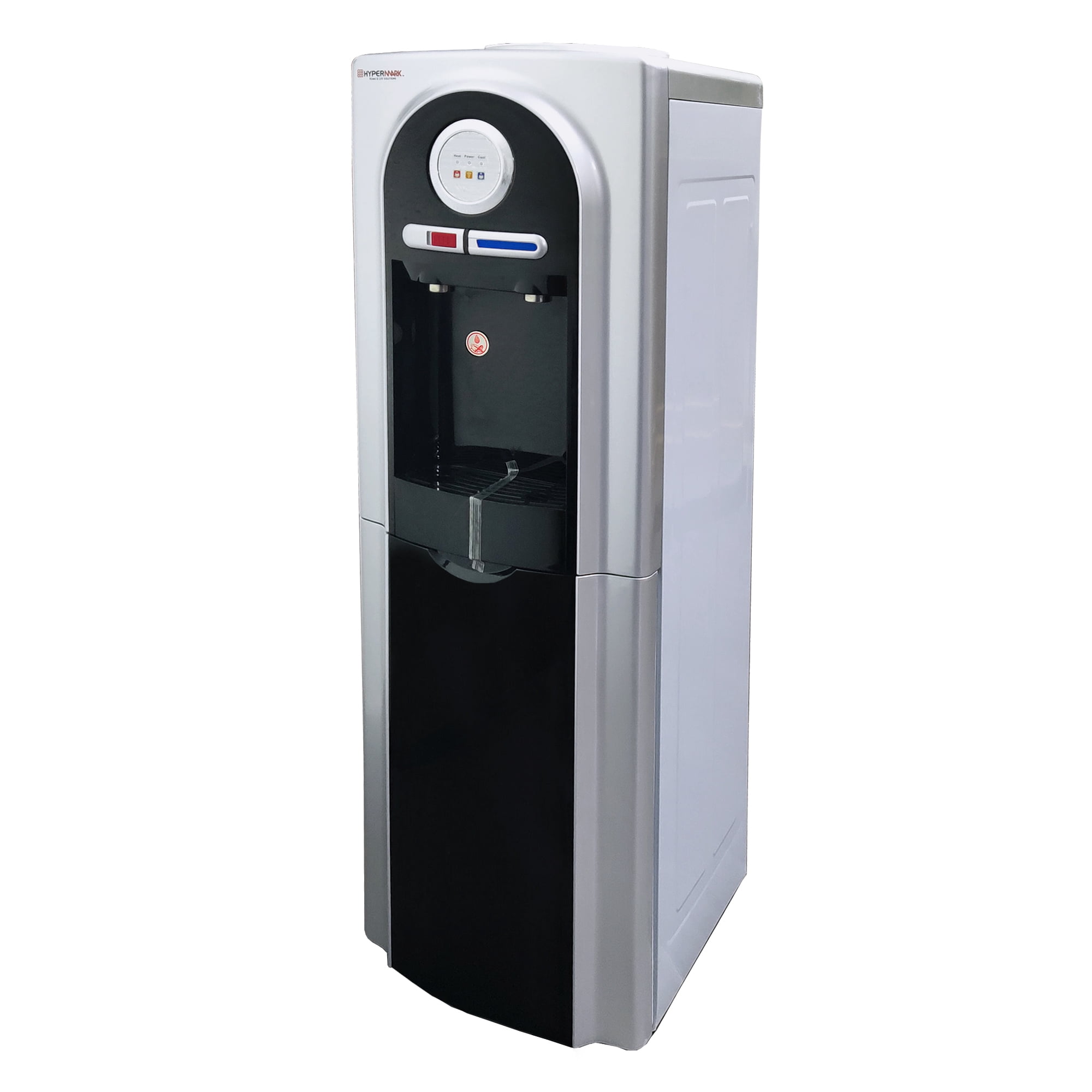 Despachador de agua color plata & negro con led's indicadores, Fabricado en policarbonato con charola extraíble, Capacidad Garrafón 20 L., enfriamiento 450 ml 15 °C a 10°C. , 750 ml por hora , calentamiento 450 ml 85°C. a 95°C , 5 litros por hora