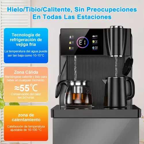 [Función de refrigeración electrónica]La función de refrigeración electrónica reduce la temperatura del agua por debajo de 10 °C. El agua puede enfriarse hasta un máximo de 10 °C. En un caluroso día de verano, tanto si está preparando una taza de té verde fresco como un vaso de limonada helada, la función de agua fría le proporcionará un fresco alivio del calor,Vale la pena mencionar que,Se puede refrigerar a 10°C durante 10 horas.