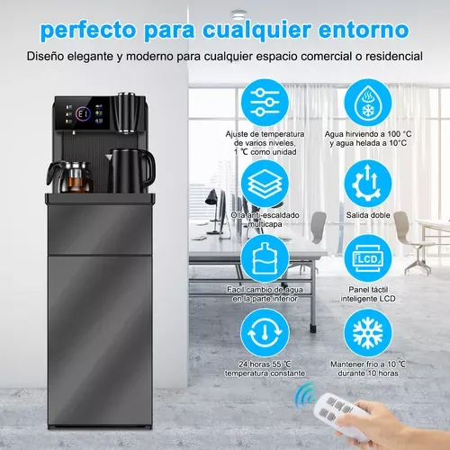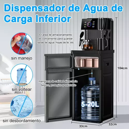[SIMPLIFIQUE SU VIDA]: El dispensador de agua es de carga inferior, diseño de dispensador de agua oculto. No hay necesidad de levantar objetos pesados, sólo tiene que abrir el cubo inferior para llenar el agua fácilmente. Armario de almacenamiento incorporado para guardar cómodamente tazas de agua, hojas de té, etc. El dispensador de agua de hervidor de agua viene con una base de agua extraíble y una bandeja de goteo extraíble para facilitar la limpieza y el mantenimiento con un enfoque en la salud del agua potable. Este dispensador de agua encajará perfectamente en cualquier hogar, oficina, cocina, piso ...... ¡en cualquier lugar!Es compatible con cubos de 5-20L.