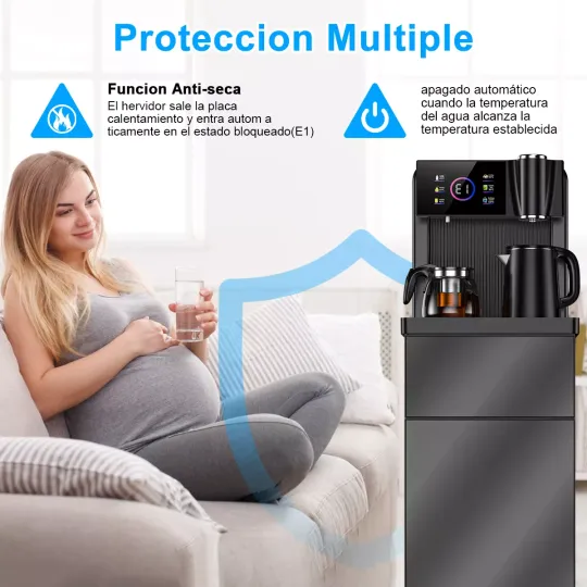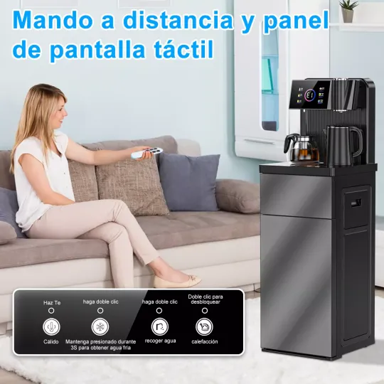 [Indicador LED inferior y control remoto] Pantalla interactiva inteligente con botones táctiles para calentar y dispensar agua sin tener que presionar con fuerza. Monitoriza la temperatura del agua en tiempo real. Diseño de control remoto inteligente, fácil de controlar desde la distancia. Diseño de luz indicadora LED, muy conveniente y fácil de operar.