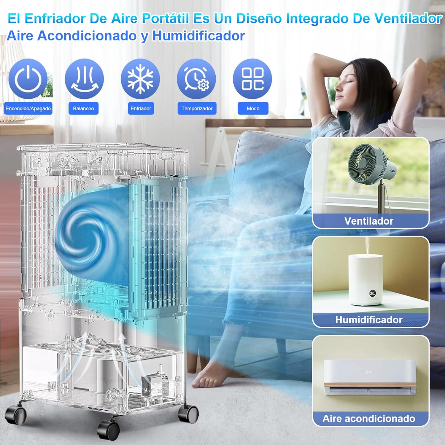 - ❄️【𝐅𝐔𝐍𝐂𝐈Ó𝐍 𝟑 𝐄𝐍 𝟏】Aire Acondicionado, Ventilador y Enfriador: Este versátil dispositivo combina las funciones de un aire acondicionado, ventilador y enfriador de aire en una sola unidad, brindando múltiples opciones de refrigeración para adaptarse a diferentes condiciones y preferencias.