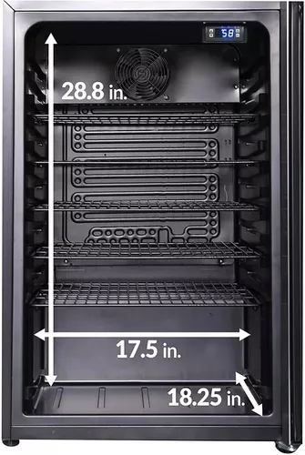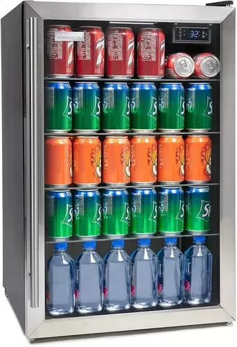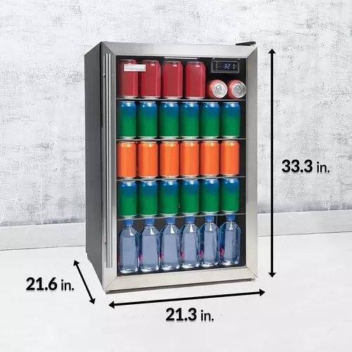Capacidad: espacioso 4,1 cu. Refrigerador de hasta 180 pies (12 oz). latas Se adapta donde sea necesario: perfecto para el hogar, dormitorios, oficinas, garajes, talleres y mucho más. Diseño elegante: puerta de cristal templado con ribete de acero inoxidable y asa de puerta, junto con armario negro se adapta a cualquier decoración interior. Termostato digital LED azul: mantiene las bebidas entre 32 °F y 50 °F. Luz LED: la luz LED brillante ilumina el interior. Almacenamiento versátil de bebidas: 4 estantes de cristal con protección contra derrames para adaptarse a una variedad de tamaños de latas y botellas. Patas de nivelación: mantener el nivel de unidad ajustando los pies de nivelación. Ahorro de energía: cumple con la normativa DOE.