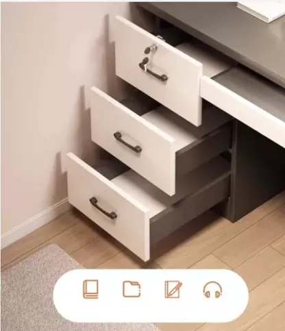 Este escritorio moderno minimalista de la marca HEAIMO es ideal para estudiantes y para uso en oficinas en casa. Con una altura de 72 cm, ofrece un espacio de trabajo cómodo y funcional. Con tres cajones, podrás mantener tus documentos y materiales organizados de manera eficiente.