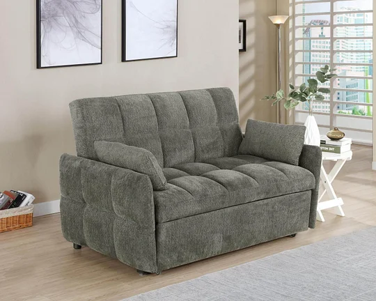 Get the best of both worlds for snoozing and lounging with this sleeper sofa. All over-tufting enhances the comfort of the chenille fabric. Slim arms and a rounded rectangular backrest give it a modern flair as a stylish sofa. Fold down the backrest to easily create sleeping space for guests. A pull-out sleeper mechanism makes this an easy-to-use upgrade for a living room or guest bedroom.