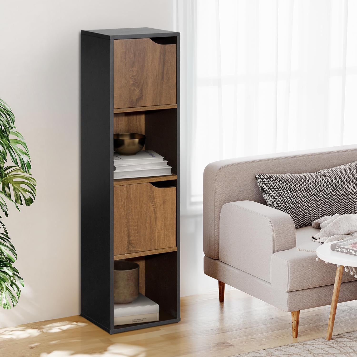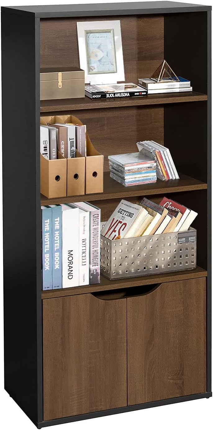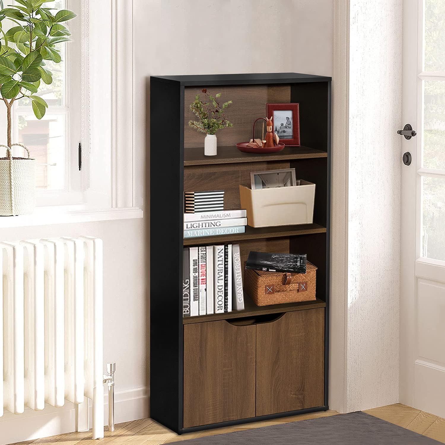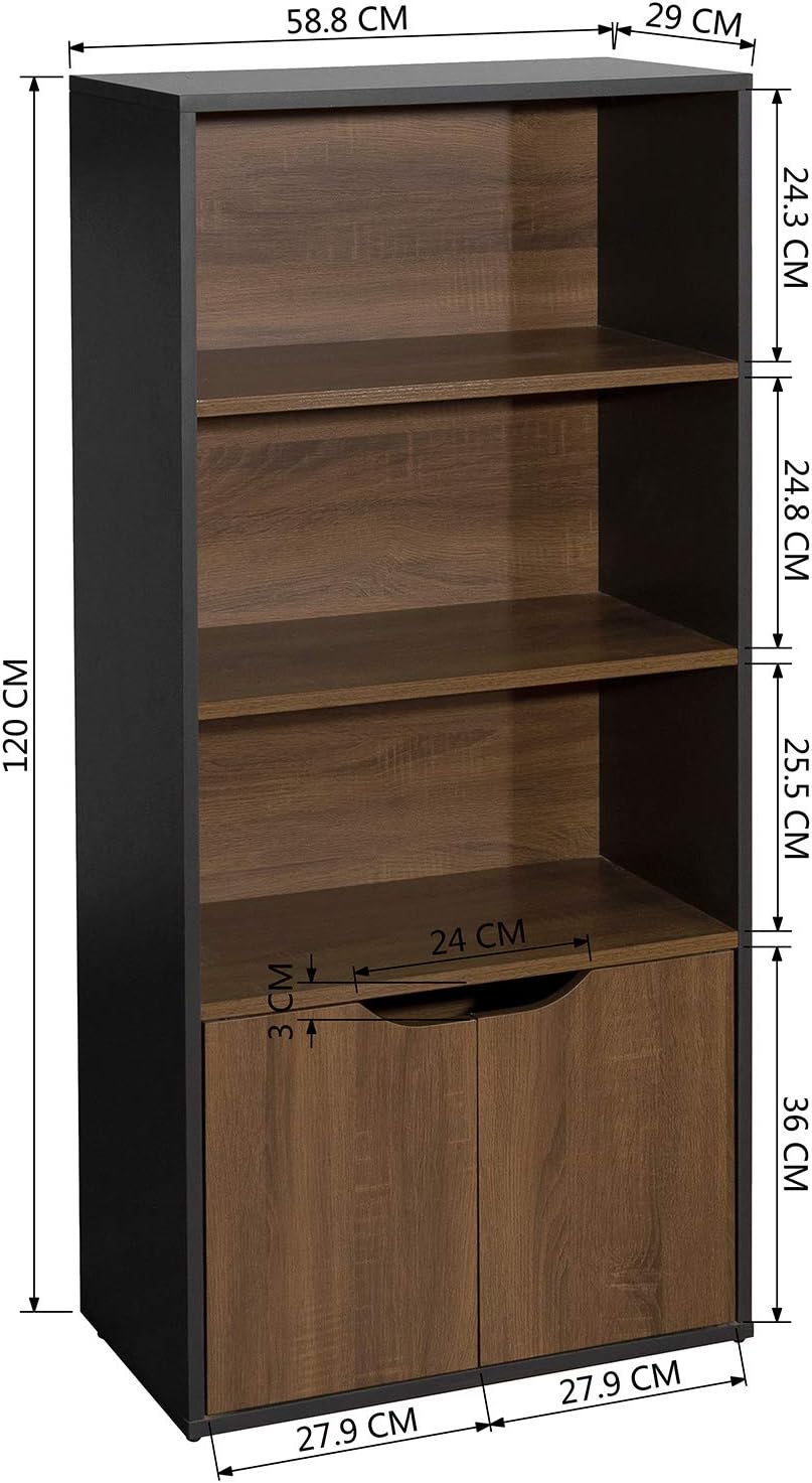 - 【Amplio Espacio de Almacenamiento】- La estantería consta de 3 estantes abiertos y un armario de doble puerta, lo que le proporciona suficiente espacio de almacenamiento. puede poner libros, revistas, plantas en macetas, etc.en los estantes como una buena decoración, poner algunos artículos diversos en el gabinete, para que su espacio vital esté más ordenado.