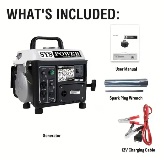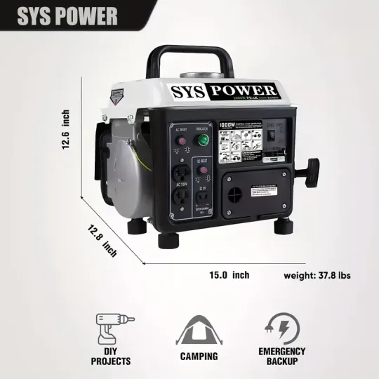 Peso ligero de 38.5 libras, diseñado con asas para proporcionar versatilidad adicional a los usuarios para un fácil transporte Potente motor de gasolina de 2 tiempos de 71 cc, gran confiabilidad, con un tanque de combustible lleno de 1.1 galones Funciona suave y silenciosamente hasta por 5 horas de operación continua segura con una carga de combustible del 50% La protección de circuito de reinicio remoto incorporada evita el sobrecalentamiento y los daños en el circuito Uso ideal para electrodomésticos, herramientas eléctricas, perfecto para acampar, hacer chupar rueda o en cualquier otro lugar donde necesite energía portátil