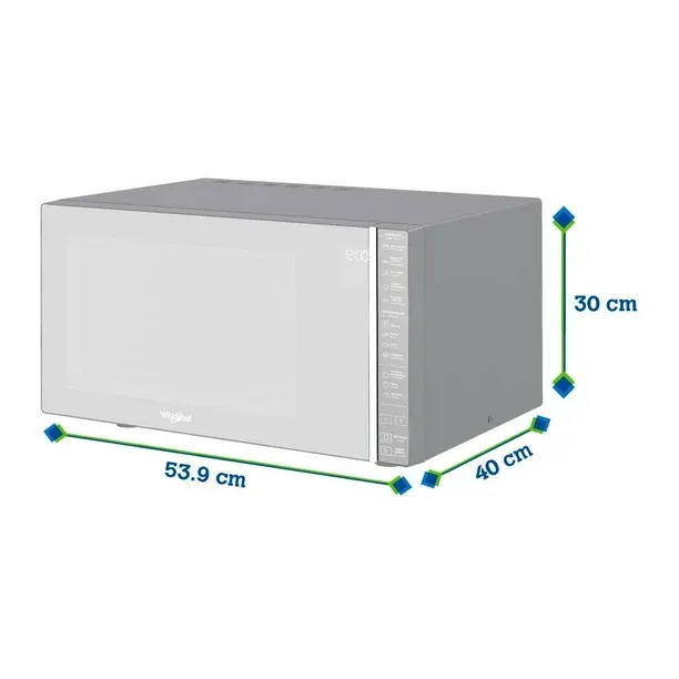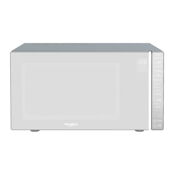 horno de microondas Whirlpool de 1.1 pies cúbicos WM1811D, y su elegante diseño silver con acabado tipo espejo.