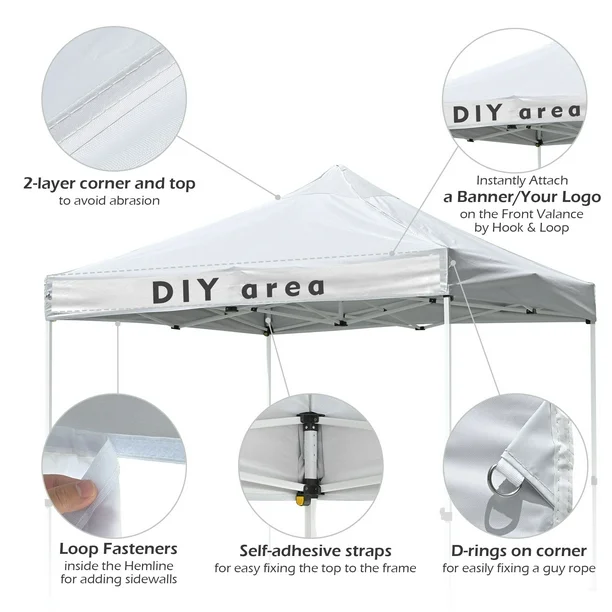 Easy Installation with Customizable Area: Tool-free Installation; Loop fasteners on valance for attaching banner