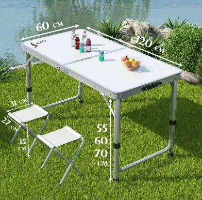 Descubre la comodidad al aire libre con nuestra práctica Mesa de Camping a prueba de fuego, ideal para actividades al aire libre, campamentos y reuniones familiares. Completamente plegable, se transforma en una maleta para facilitar su transporte.