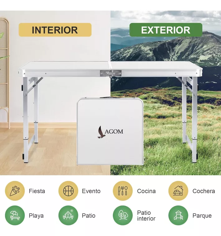 Se pliega perfectamente por la mitad y tiene un práctico asa de transporte para un fácil transporte y almacenamiento compacto. Adecuado para cenas, fiestas, camping, banquetes, bodas, trabajo, bufé, comer, barbacoa, exhibición, reuniones familiares. Esta mesa plegable de 120 CM se puede utilizar como mesa de camping, mesa de picnic, mesa de cartas, mesa de manualidades, computadora de oficina, mesa de cocina, mesa auxiliar de barbacoa, mesa de trabajo para adultos, etc.