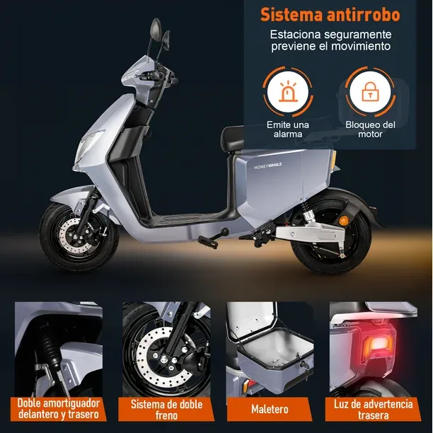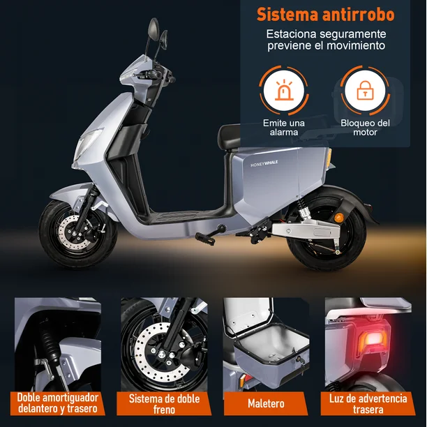 ¡EQUIPO NUEVO! Una movilidad ágil y refinada, eso es lo que promete nuestro nuevo y exclusivo modelo i009 de Honey Whale, con un desplazamiento suave y fluido de hasta 50 km, una increíble autonomía de hasta 60 km y una sólida estructura con hermosos acabados minimalista, con los que sin duda robarás miradas a tú paso.