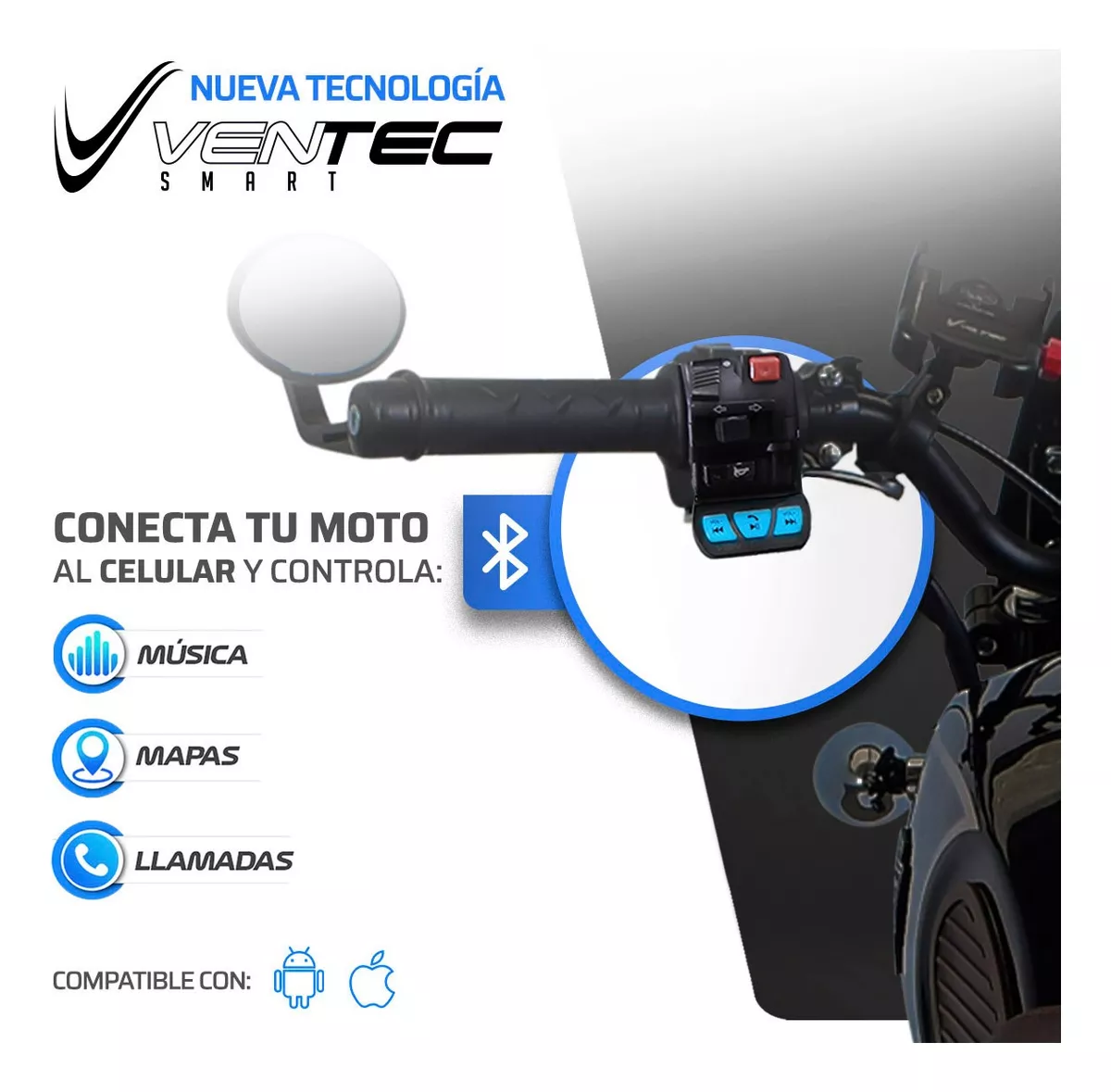 Además, la incorporación de la tecnología VENTEC, te permitirá enlazar la moto con tu smartphone para subir o bajar el volumen de tus canciones favoritas, adelantar o regresar canciones y contestar o declinar llamadas.
