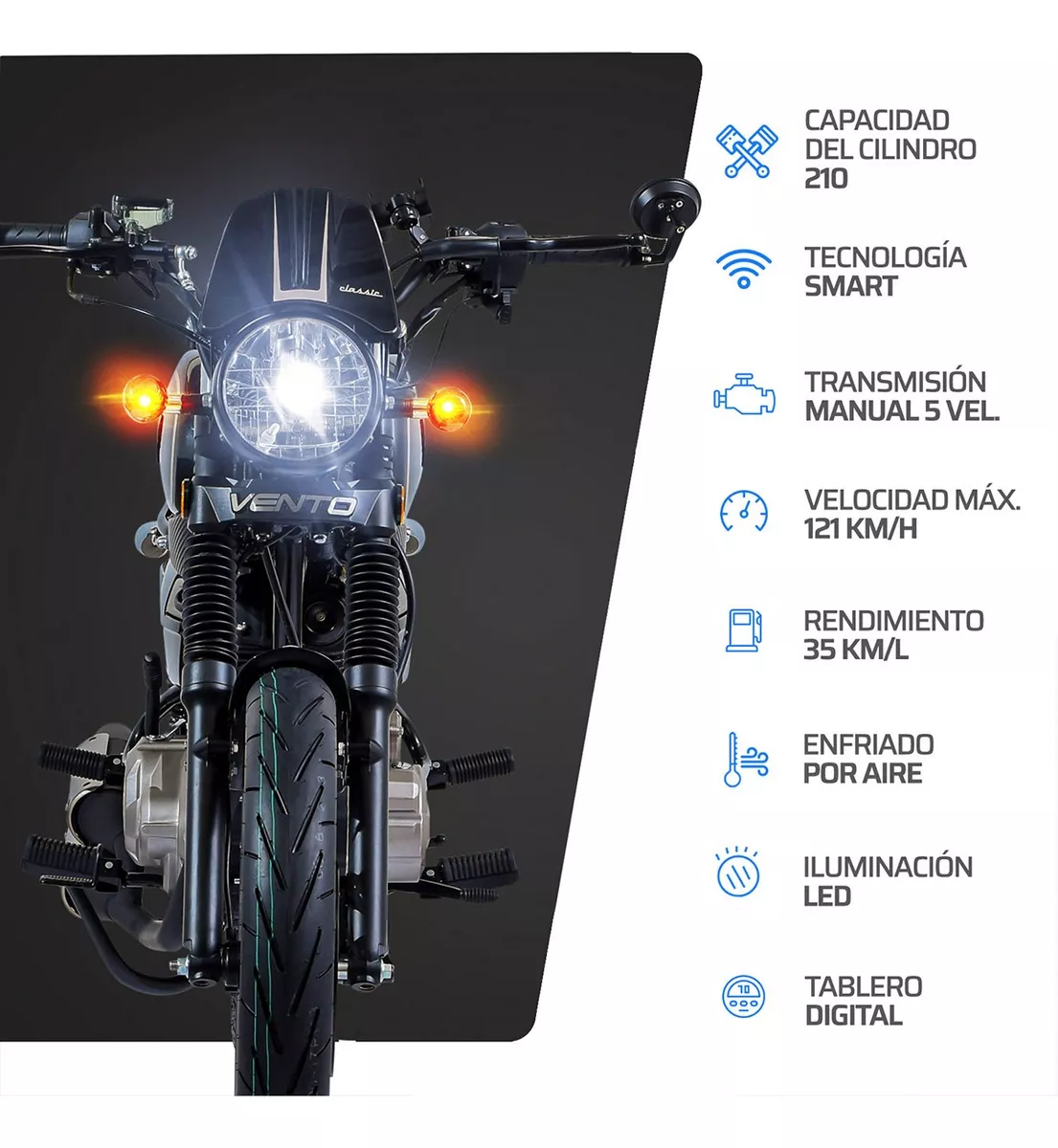 Súbete a esta motocicleta Vento modelo Thriller 210 2025 y siéntete un verdadero amo del camino.