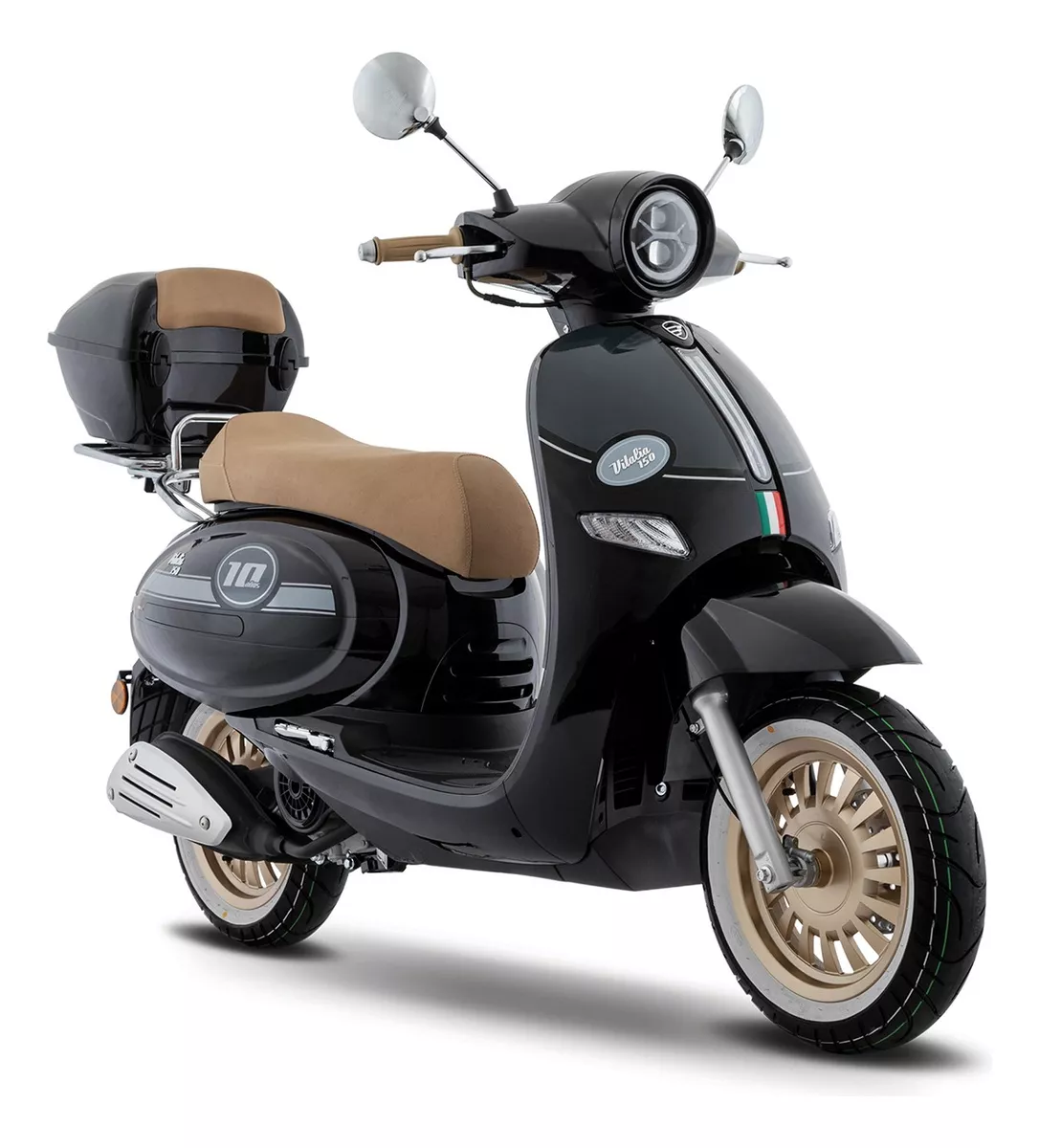 Esta motoneta alcanza una velocidad máxima de hasta 86 kilómetros por hora, cuenta con un tanque con capacidad de 5 litros y soporta un peso de hasta 150 kilos.