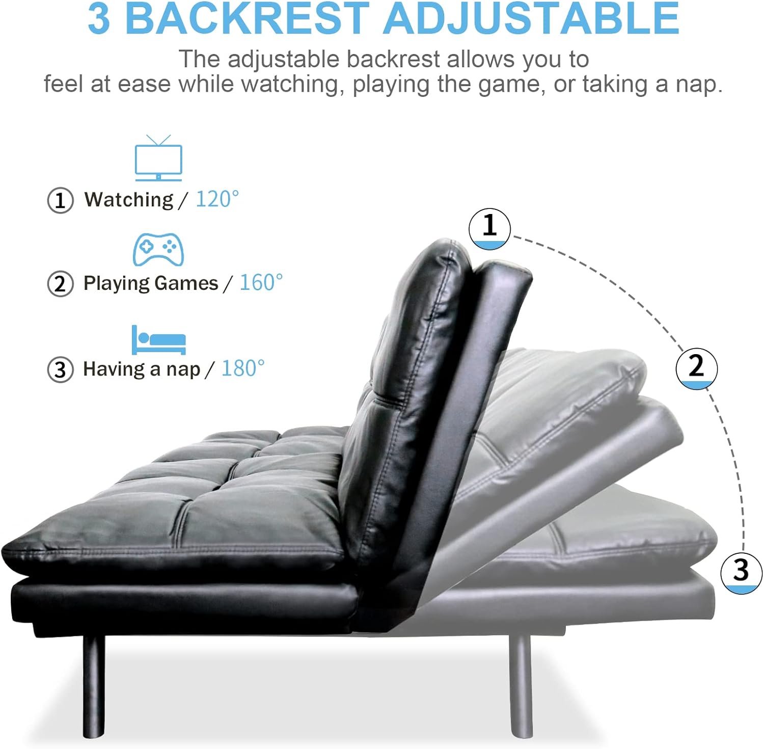 - Materiales de alta calidad: este sofá convertible de futón está fabricado con piel sintética y 6 patas de metal chapado en cromo, que está relleno de espuma viscoelástica de alta densidad para mayor comodidad, duradero.