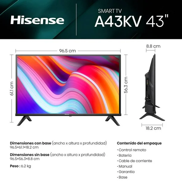 Las pantallas de la serie A43KV tienen alto contraste. Lo que te brinda reflejos más brillantes, colores negros más profundos y colores más vibrantes.