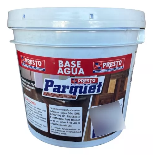 El Presto Parquet Base Agua es un adhesivo especializado para la instalación de pisos de madera y parquet, ideal para espacios residenciales y de pisos superiores. Posee una alta viscosidad que facilita la nivelación de superficies no uniformes y proporciona una excelente adherencia, resistencia a temperaturas elevadas y a la humedad. Este producto es amigable con el medio ambiente al ser libre de solventes y contribuye a la economía en su uso. Tiene un tiempo de trabajo de 20-30 minutos y requiere 24 horas para el secado completo. Con un rendimiento de entre 900 gramos y 1 kilogramo por metro cuadrado, es una opción eficaz para la colocación de pisos de madera.