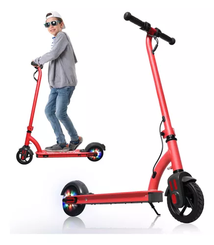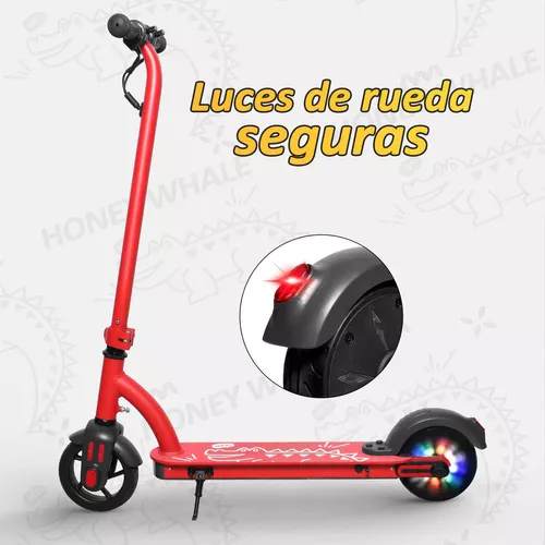 Resistente y seguro: El patinete está fabricado con una resistente estructura de aluminio que garantiza una larga vida útil. Las ruedas antideslizantes de goma y el freno electrónico trabajan juntos para garantizar la seguridad del niño mientras conduce. Durante la conducción, la rueda trasera emite luces rojas, verdes y azules, lo que les encanta a los niños.