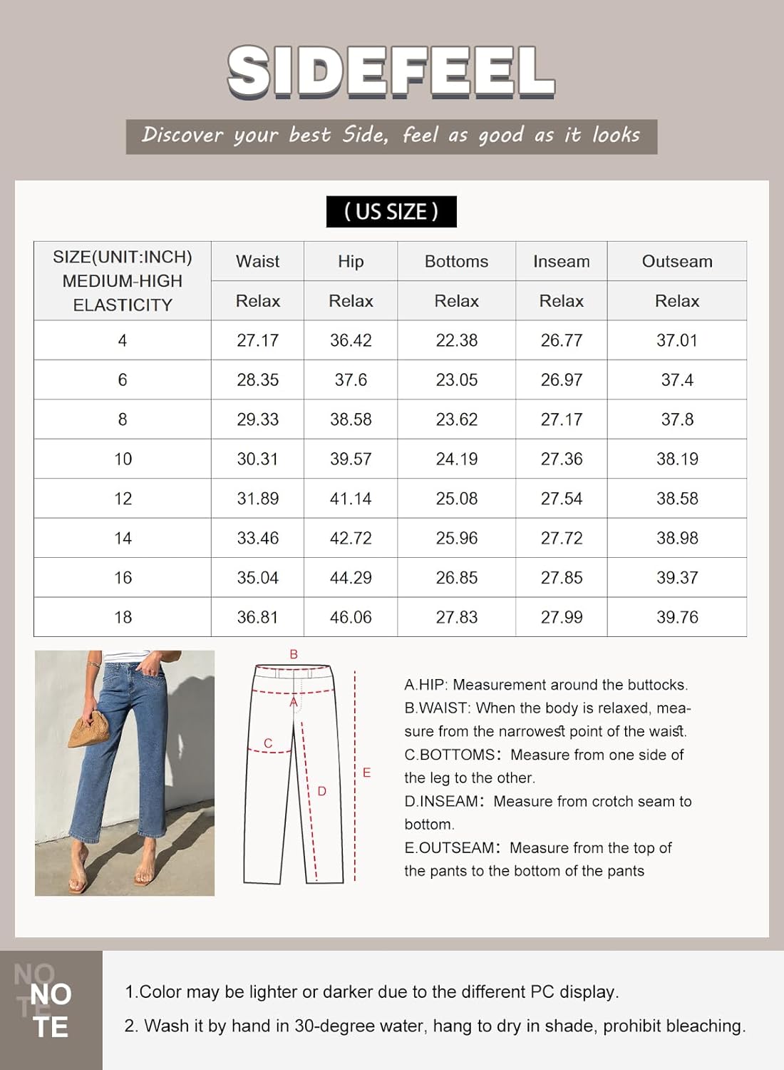 La longitud de estos jeans llega casi al tobillo, no la longitud corta, lo que te permite combinarlos fácilmente con una variedad de sandalias, tacones y botas en cualquier temporada.