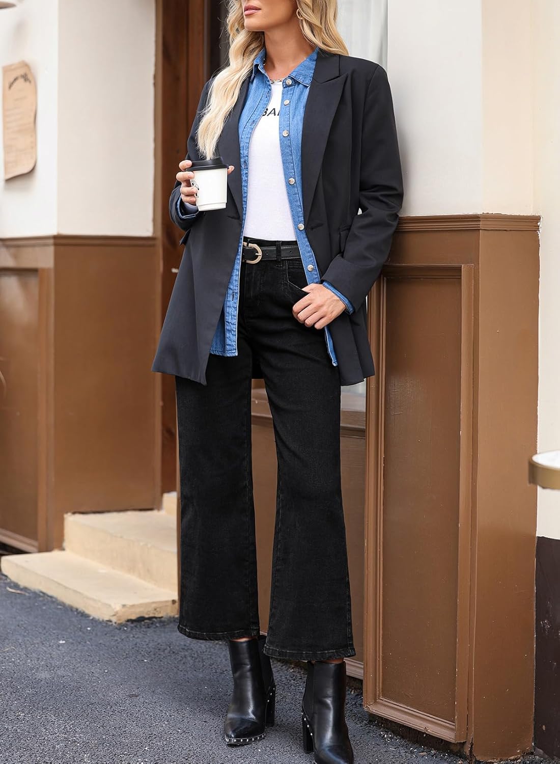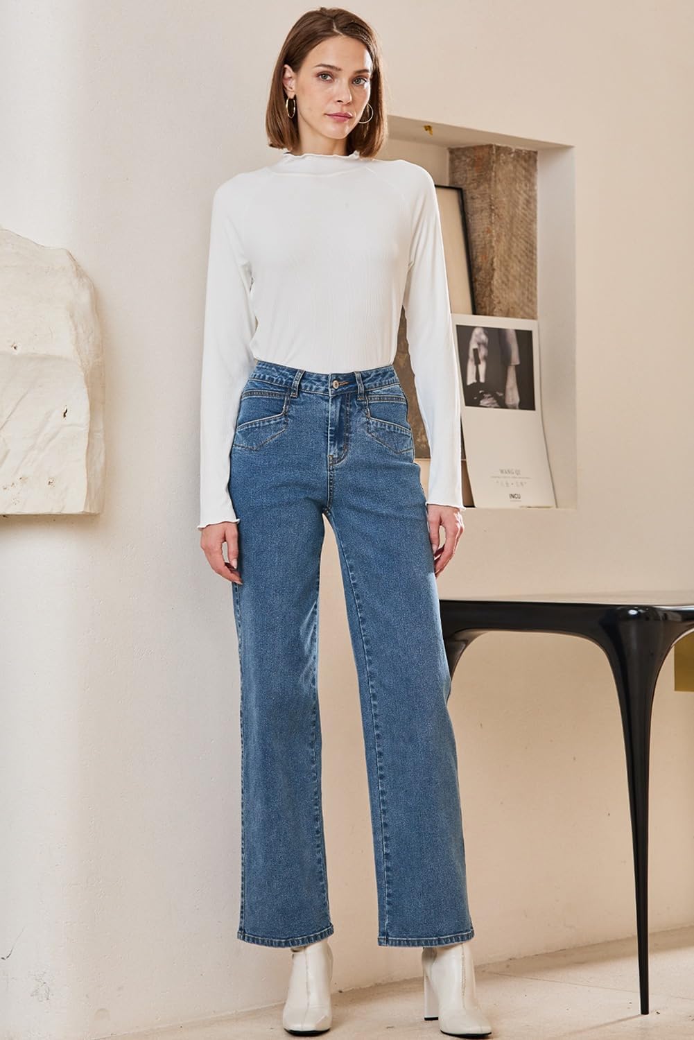 Los jeans de pierna ancha se pueden usar con camisetas, suéteres y abrigos para todas las estaciones