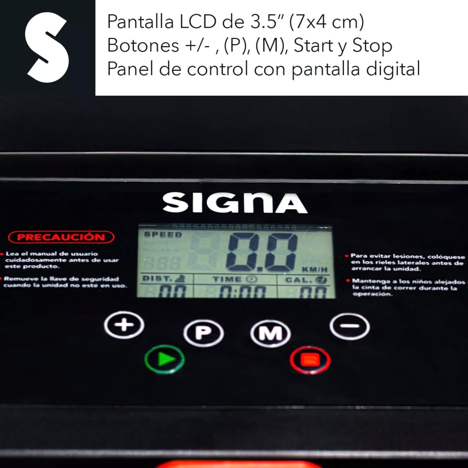- - Panel de control con pantalla digital azul LCD de 3.5 pulgadas. En ella podrás visualizar tus resultados de velocidad, distancia, calorías.