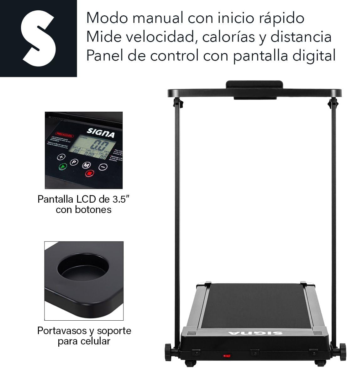 - Ejercítate desde la comodidad de tu hogar con la caminadora eléctrica plegable de SIGNA. Es perfecta para mantener un peso saludable y unas piernas bien tonificadas.