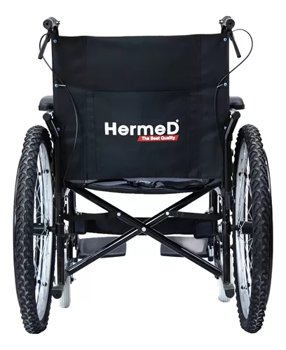 SILLA DE RUEDAS H1 "Libertad en Movimiento, Comodidad en Cada Rueda" MODELO: H1 MARCA: HERMED MATERIAL: Acero COLOR: Estructura esmaltada en negro, asiento y respaldo de loneta negra, empuñaduras negras