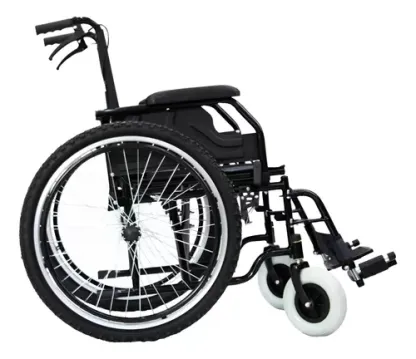 //CARACTERÍSTICAS// - 2 tipos de frenos: uno de mano y otro manual. - Resistente estructura de acero con acabado esmaltado. - Respaldo (45 x 42 cm) y asiento tapizados en loneta. - Asiento de 51 x 43 cm. - Respaldo abatible (27 x 83 cm) mediante tornillos. - Cruceta reforzada para mayor estabilidad. - Empuñaduras ergonómicas y texturizadas (10 x 2.5 cm). - Descansabrazos rectos, fijos y acolchados. - Descansapiés desmontables con ajuste a 3 alturas diferentes. - Ruedas traseras todoterreno de 22 pulgadas con aros de rayos y cañuela de alto impacto. - Ruedas delanteras giratorias de 6 pulgadas. - Soporte para subidas integrado. - Sistema de frenado por palanca para una mayor seguridad. - Bolsillo trasero portaobjetos y talonera ajustable. - Diseñada para personas de hasta 115 kg. - Incluye cinturón de seguridad y pantorrillera desmontable.