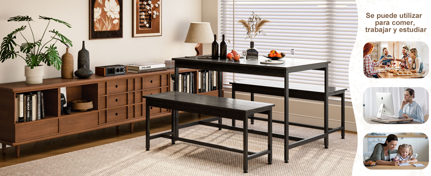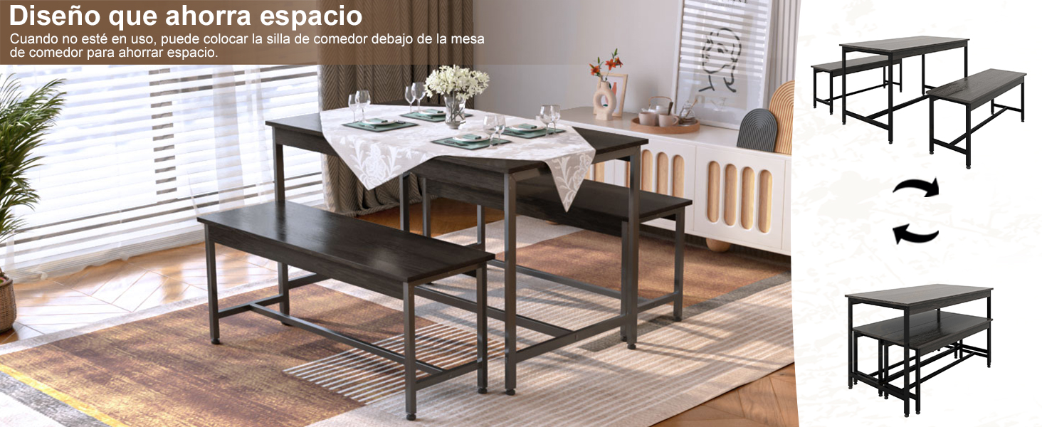 Comedor Tamaño del Juego: El juego de sillas comedor 4 sillas consta de 1 Mesa de comedor y 2 Sillas de comedor. Tamaño de los comedores: 110 × 60 × 77 CM, tamaño de la silla de comedor: 95 × 30 × 47 CM. Se puede sacar fácilmente cuando está en uso y la silla del comedor se puede empujar debajo de la mesa para comedor cuando no está en uso, lo que le ahorra un valioso espacio