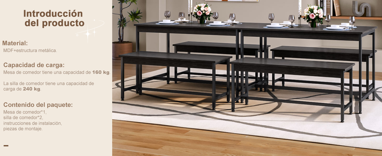 Comedor Resistente y Duradero: El juego de sillas de mesa comedor está hecho de una combinación de estructura de acero de alta calidad y tablero de fibra de densidad media, que es fuerte y estable, y la superficie es fácil de limpiar. Los comedor pequeño y sillas de comedor pueden soportar una carga de 160 y 240 kg. El juego de sillas mesa para comedor también ayuda a realzar la sofisticación de la cocina y el salón