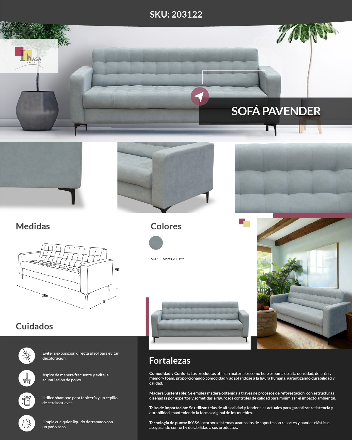 Madera sustentable, tela importada y espuma de alta densidad
